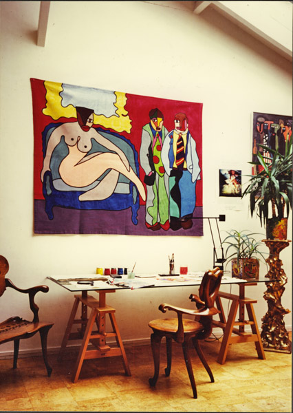 Le canapé – dont la couleur, rouge, rose ou bleu de cobalt, est en relation avec la fièvre de ses occupants – place le décor de Cupidon.